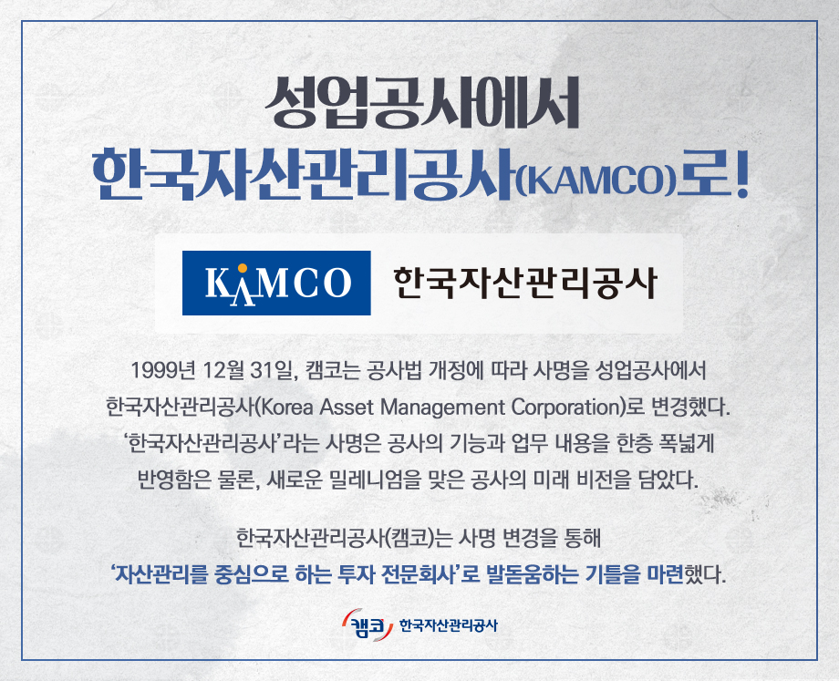창사 60주년을 한 해 앞두고 캠코가 대한민국 금융과 함께 걸어온 60년을 되짚어보고, 앞으로 캠코가 이끌어 갈 새로운 100년을 전망해봅니다.