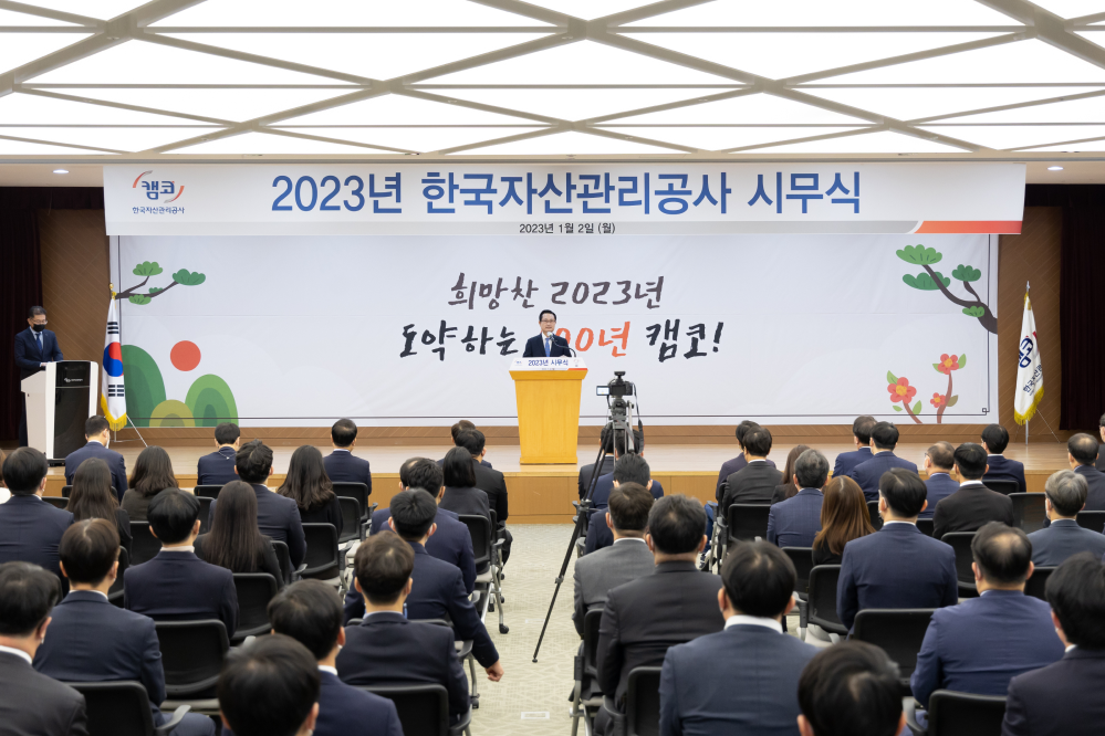 권남주 사장은 이어서 “올해는 100년 캠코를 향해 도약하는 튼튼한 기둥을 세워야 하는 해”라며, “캠코인의 전통과 자부심을 바탕으로 변화에 빠르게 적응하고, 위기에 도전적으로 맞서 국민과 정부가 기대하는 역할을 성공적으로 수행해 나가자”고 당부했습니다.