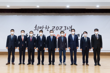 임직원 여러분! 올해 세계경제는 고물가·고금리·저성장 국면으로 2008년 글로벌 금융위기 이후 최고의 불확실성과 변동성에 직면하고 있습니다. 이러한 영향으로 올해 우리 경제 성장세도 잠재성장률 수준을 밑도는 등 경제여건 악화로 취약해진 가계와 기업들을 중심으로 어려움이 더욱 가중될 것으로 예상되고 있습니다. 이럴 때 일수록 우리는 취약 부문에 대한 경제안전망을 더욱 촘촘히 구축할 필요가 있습니다. 위산일궤 (爲山一簣)의 자세로 우리 경제의 위기 대응력을 한 단계 더 높이는데 기여해야 합니다. 산을 만드는 일도 한 삼태기의 흙부터 시작된다는 「논어」 자한편에 나오는 사자성어로 어렵더라도 포기하지 말고 한 발 한 발 전진하는 것을 의미 당면한 위기 극복을 위해 그 어느 때보다 공사의 역할이 요구되는 지금, CEO로서 올 한해 중점 추진할 경영방침을 여러분과 함께 공유하고자 합니다.