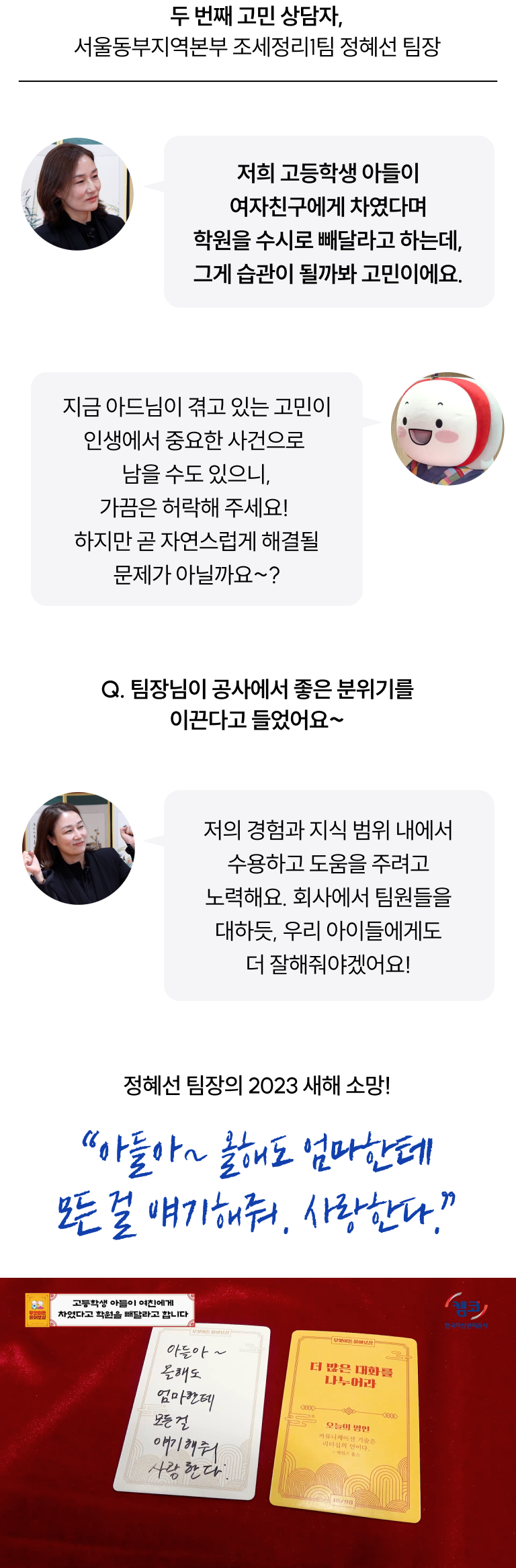 오늘은 캠코 직원들의 다양한 고민을 들어보았어요!