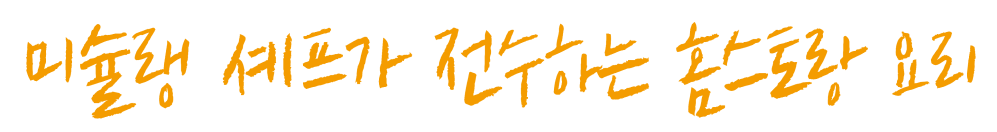 대형마트에서 쉽게 구할 수 있는 재료들만으로 완성된 오늘의 ‘홈스토랑 레시피’. 30분 내외의 짧은 조리 시간과 플레이팅 팁을 곁들이면 고급스러운 파인다이닝 요리가 완성된다. 주말에 가족 혹은 친구들을 초대하여 직접 만들어 대접하면 소중한 추억을 만들 수 있을 것이다.