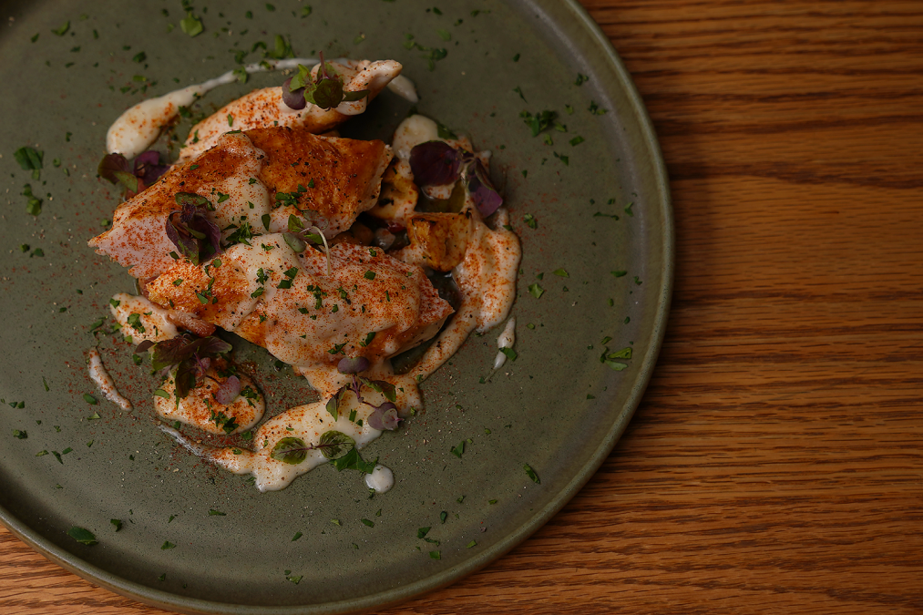 닭가슴살을 건진 뒤, 닭을 구운 팬에 다시 불을 올리고, 후추와 생크림을 넣어