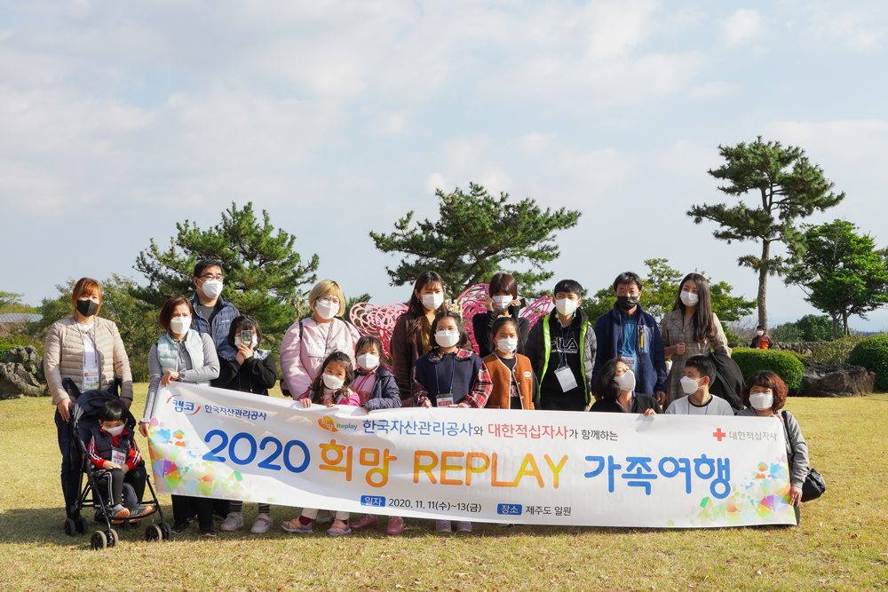 ‘희망 Replay 제주도 가족여행’은 캠코의 대표적인 사회공헌 활동입니다. 캠코는 2010년부터 매년 2∼3회 이상 행사를 진행해, 지난해까지 총 23회에 걸쳐 1100여 가족이 ‘희망 Replay 제주도 가족여행’에 참여했습니다. 올해는 코로나19로 인한 방역지침에 따라 여행횟수와 참여인원을 대폭 줄여 총 50가족을 선정해 진행했습니다.