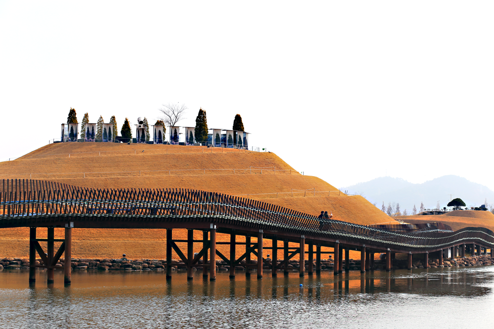 용산 전망대까지 가려면 왕복 40분 넘게 걸린다. 언덕은 완만하지만 만만치 않다. 마스크 쓰고 걷다 보면 호흡이 꽤 거칠어진다. 하지만 전망대는 넉넉하게 되갚아준다. 비현실적으로 동글동글한 습지와 물길, 파형을 그리며 날아오르는 새떼, 섬들과 먼 바다까지 차곡차곡 눈에 들어온다. 전망대 아래 바위에 걸터앉아 차가운 맥주를 천천히 홀짝거리고 싶었다.