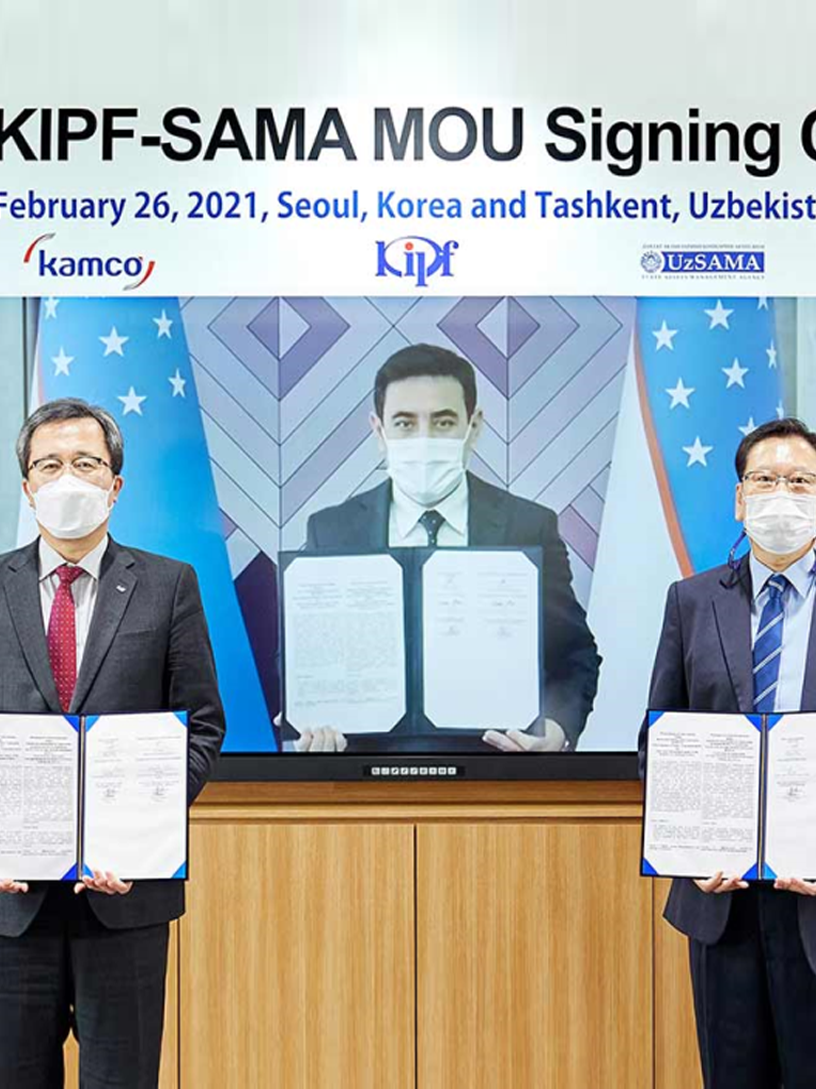 캠코-조세硏, 우즈베키스탄에 국가자산 관리 노하우 전수 캠코는 2월 26일(금) 캠코양재타워 20층 대회의실에서 한국조세재정연구원(원장 김유찬), 우즈베키스탄 국가자산관리청(SAMA, 사장 아키말혼 오르티콥)과 온라인으로 「국유재산 관리ㆍ개발 및 국영기업 민영화 업무협력 등을 위한 양해각서(MOU)」를 체결했다. #국가자산관리 #노하우 #MOU