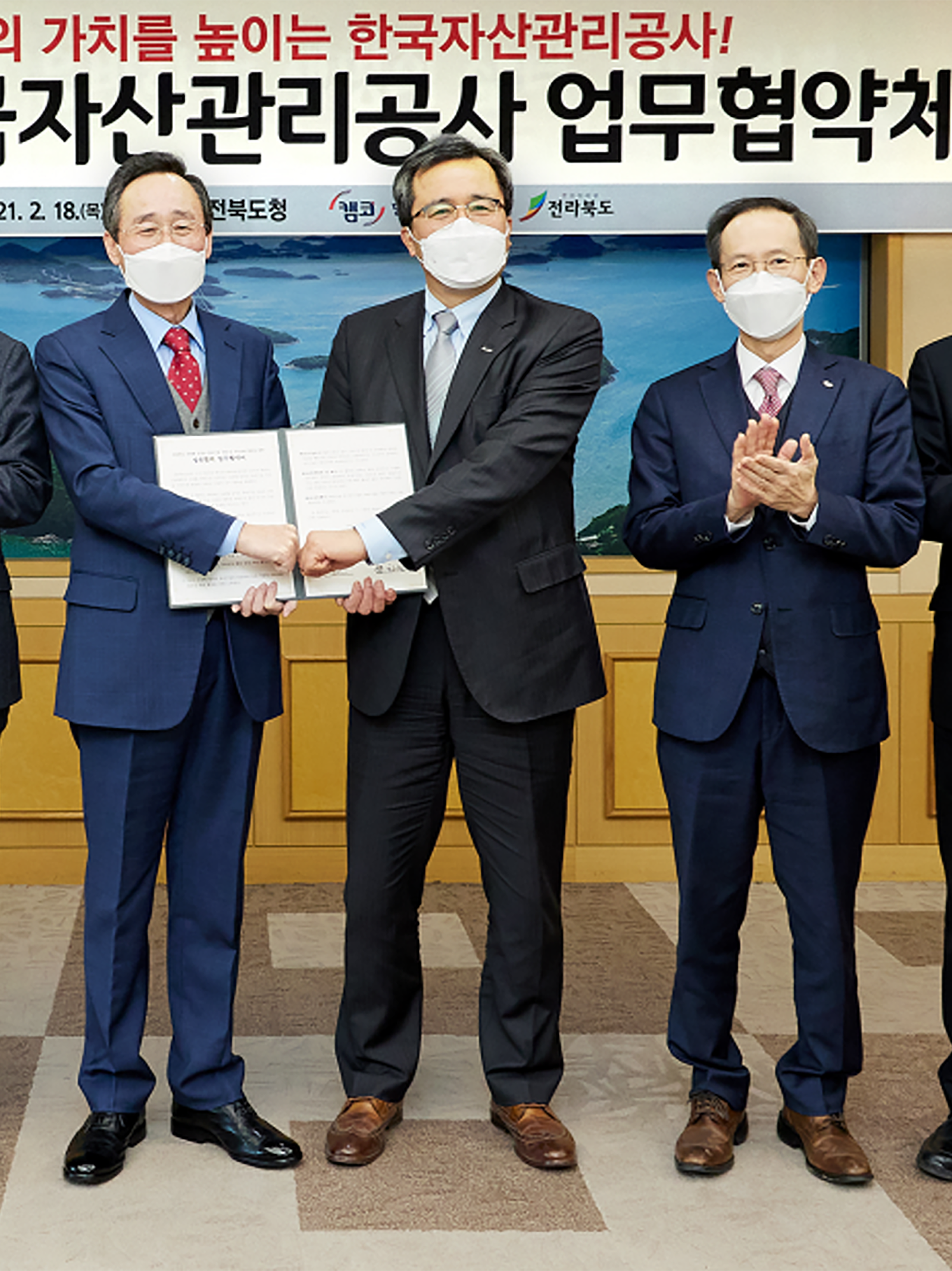 캠코-전라북도, 기업지원 및 지역발전 업무협약 체결 캠코와 전라북도는 2월 18일(목) 오후 3시 전라북도 도청에서 「전라북도 상생형 일자리 참여 기업지원 및 지역사회 발전을 위한 업무협약」을 체결했다. "#상생형일자리협약 #지역경제활성화 #전라북도"