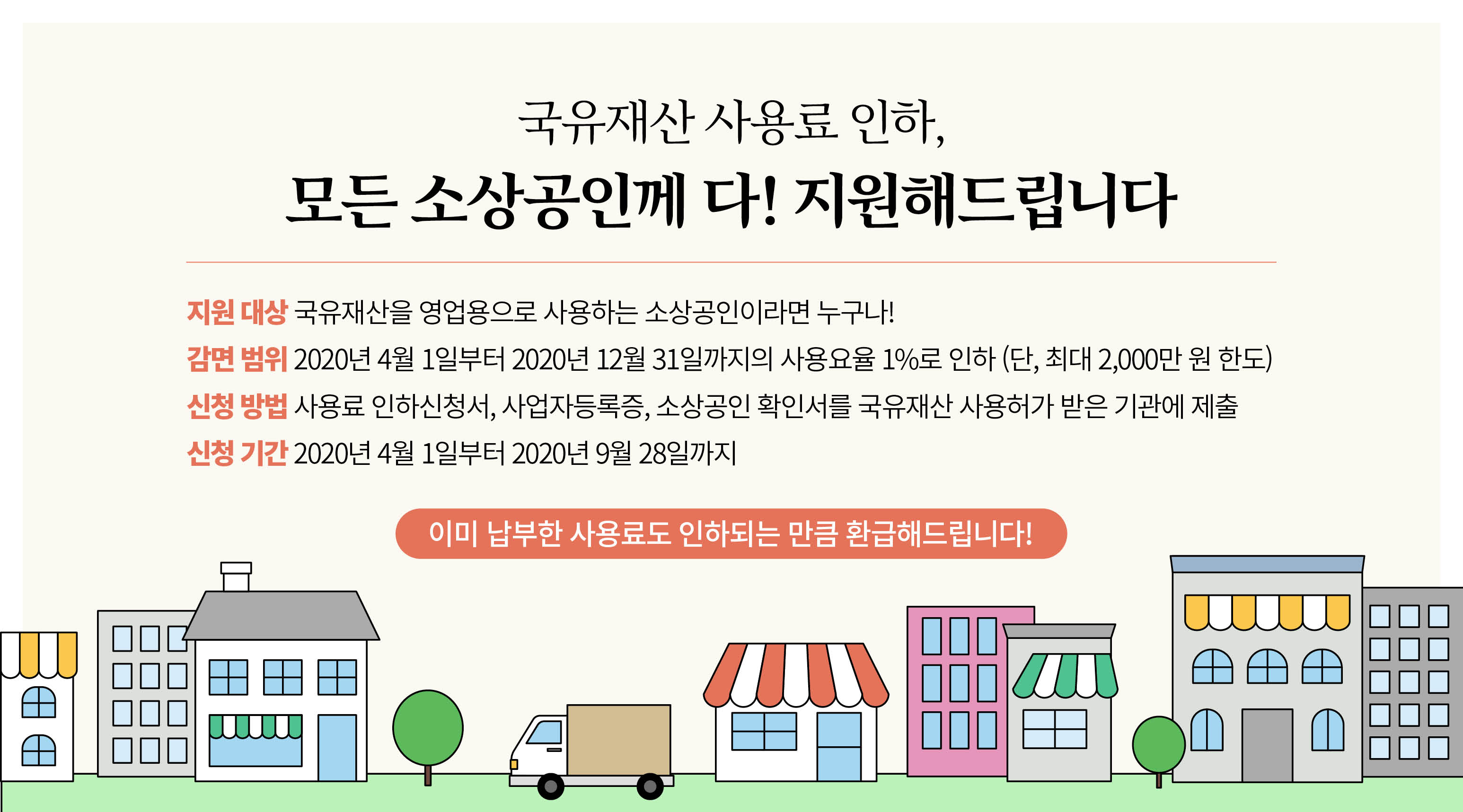 코로나19의 여파로 힘들어하는 소상공인들이 많으신데요, 캠코가 희망의 손을 맞잡고자 합니다. 국유재산 대부료 인하로 용기를 얻은 수혜자 분들의 이야기를 시작합니다.