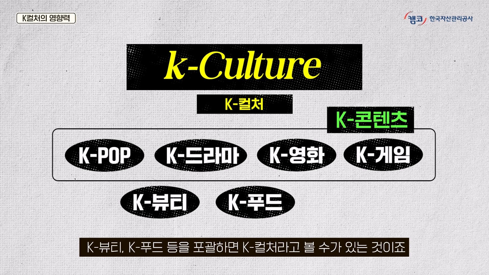 ‘문화’는 이상적인 가치를 실현하려는 집단적인 실천 행위를 말하는데요. 이를 담아내 표현하는 것이 바로 ‘문화 콘텐츠’ 입니다. K-POP, K-드라마, K-영화, K-게임 등은 K-콘텐츠라 하고 여기에 K-뷰티, K-푸드 등을 포괄하면 K-컬쳐라고 합니다. 쉽게 말해서 K-컬쳐는 라이프 스타일에 영향을 미치는 것입니다. 단순히 콘텐츠를 소비하는데 그치지 않고 일상생활까지도 한국식으로 즐기는 것을 말하죠. 이런 경향이 요즘 미래세대에서 강하게 나타납니다. 젊은 시절부터 K-컬쳐의 영향을 받게 되면 한국에 대해서 우호적인 태도를 갖게 되는 것이죠. 이는 우리 국력이나 브랜드 가치, 세계 진출에 있어서 긍정적인 영향을 미치게 됩니다.