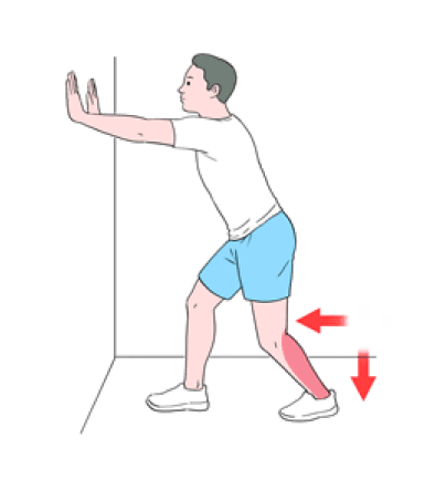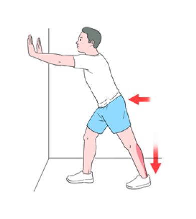 - 뒤쪽 다리의 종아리와 아킬레스건이 늘어나는 것을 느끼면서 20~30초 간 유지한다.