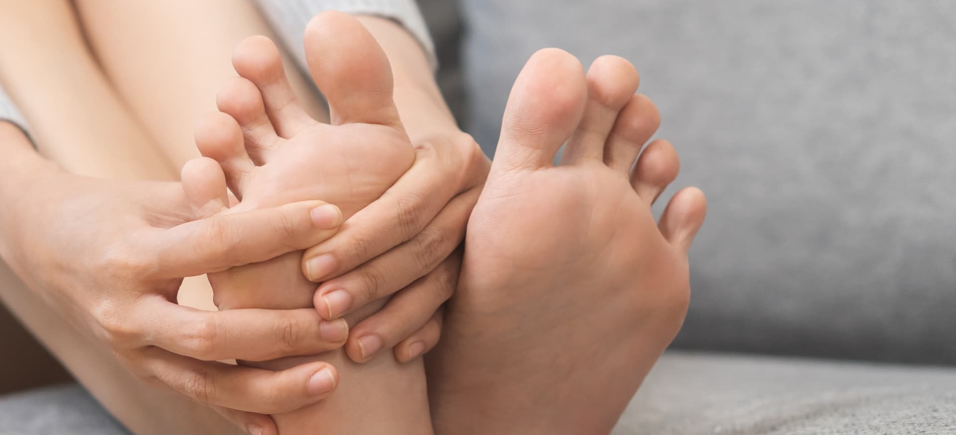 - 같은 쪽 손으로 발가락을 말아 쥐고, 발가락 관절이 위로 꺾이도록 발가락을 몸 쪽으로 당긴다.